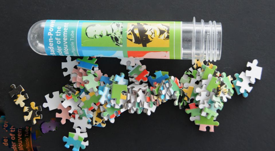 Das kleine Puzzle „Robert Baden-Powell“ zeigt vier Porträts aus verschiedenen Lebensabschnitten des Gründers der Pfadfinderbewegung. In bunten Farben, etwas abstrakt, wird Baden-Powell als Jugendlicher, als General, beim ersten Pfadfinderlager in Brownsea und als Gründer der Weltpfadfinderbewegung abgebildet. Die 99 Teile sind leicht zusammenzufügen und für Kinder und jüngere Jugendliche geeignet, um damit auch die einzelnen Stationen seines Lebens besser erläutern zu können.